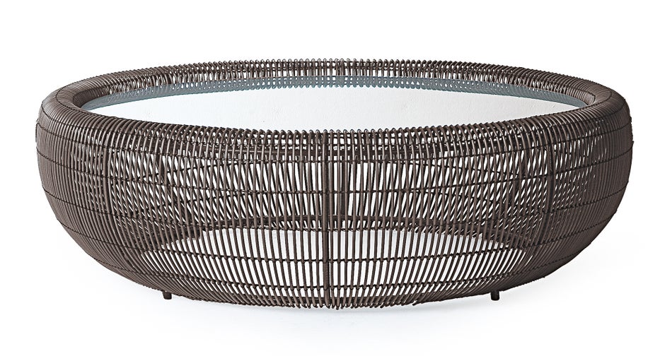 The Croissant tables from Kenneth Cobonpue feature a round, organic shape that seamlessly fits into any seating arrangement. Their open weave design promotes airflow, ensuring stability on windy terraces and balconies. Each table includes a standard removable frosted glass top, enhancing its functionality and aesthetic appeal. Available colours: Brown / Whitewash.