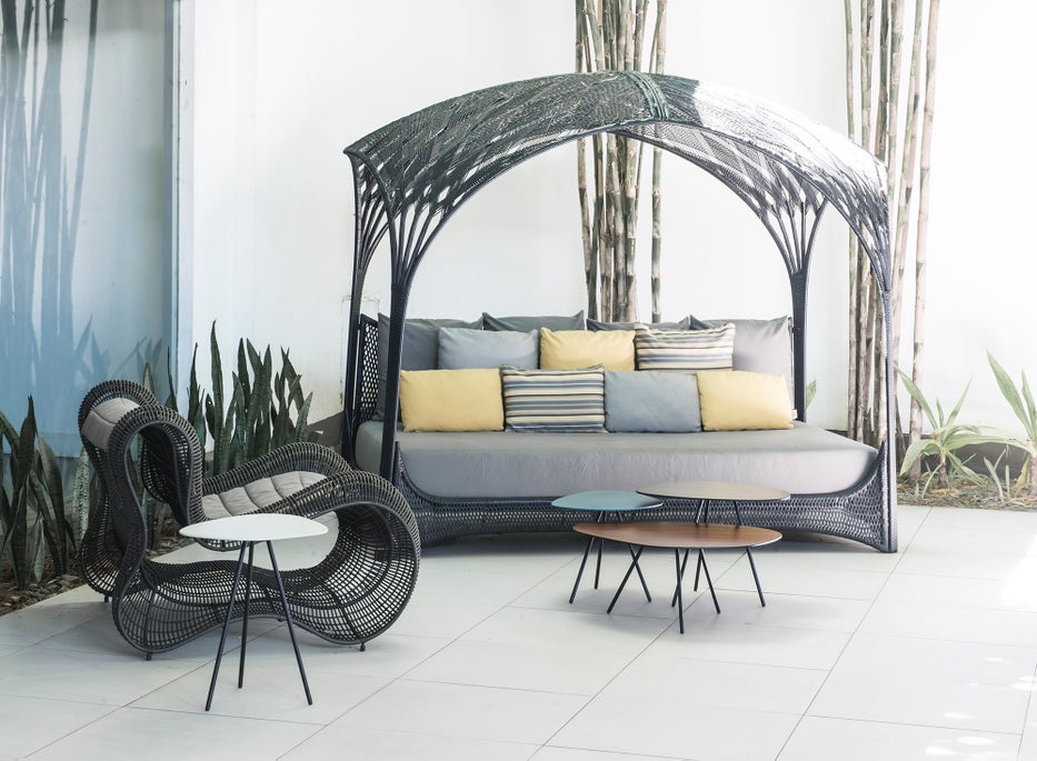 The Pebble tables from Kenneth Cobonpue feature tabletops inspired by natural shapes, allowing you to arrange them creatively to mimic the look of stepping stones in a riverbed or the gentle curves of a forest canopy. Their slender design makes them versatile, perfect for placing throughout your living room or other spaces to add an organic touch to your decor. Available Colours: Black / Denim Blue / Warm Grey / Macassar / Walnut