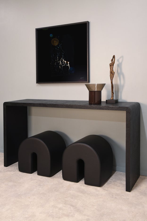The Waterfall Console’s streamlined design is sturdy, stable, and effortlessly elegant, making it a versatile choice for hallways, living areas, or even as a compact workstation. Part of the Clarence range, this piece embodies a highly textural quality, showcasing true craftsmanship with each item individually finished in multiple materials. Eco-friendly and exceptionally durable, the Clarence range is well-suited for commercial settings. Handmade by skilled artisans, each piece reflects meticulous attention to detail, ensuring a refined and standout design. Primarily designed by May Time, the collection combines style and functionality, offering a unique and lasting addition to any space.
