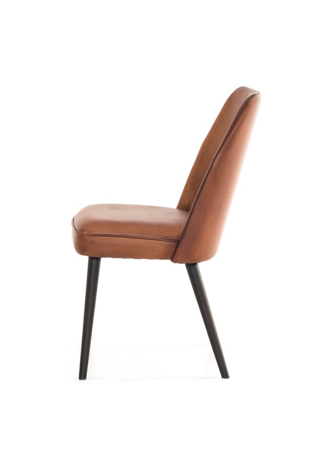 PURE Jacky Leather Dining Chair - Matt Light Brown / Carbon Legs