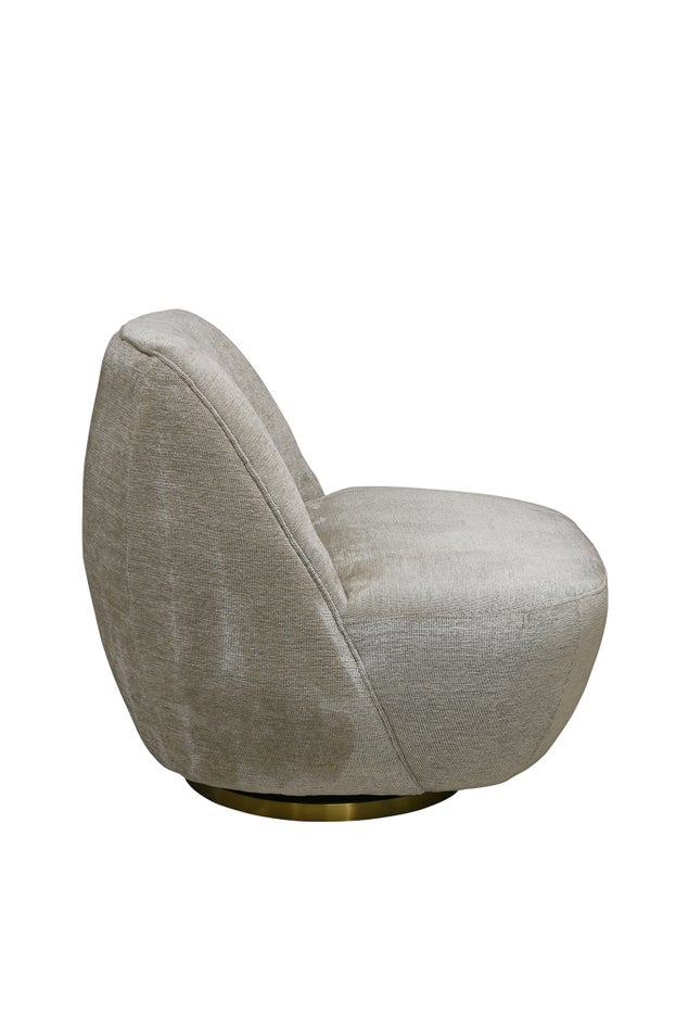 W740 D860 H750 SH460 100% Polyester - 440g/m2 Plush Pile fabric Matt Brass Metal Swivel Base with Wooden Frame