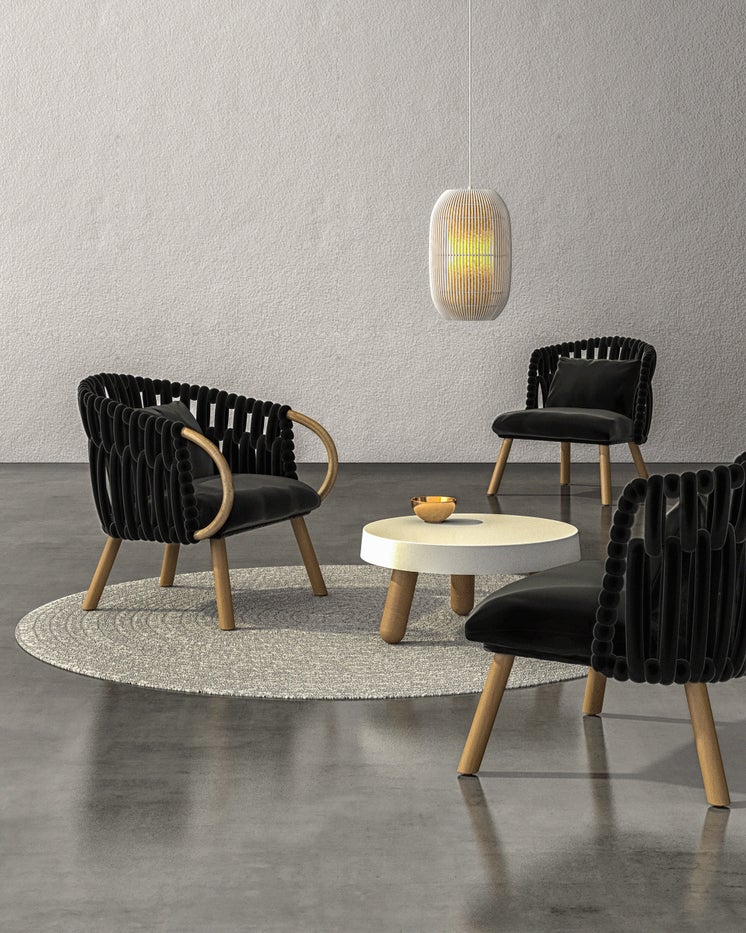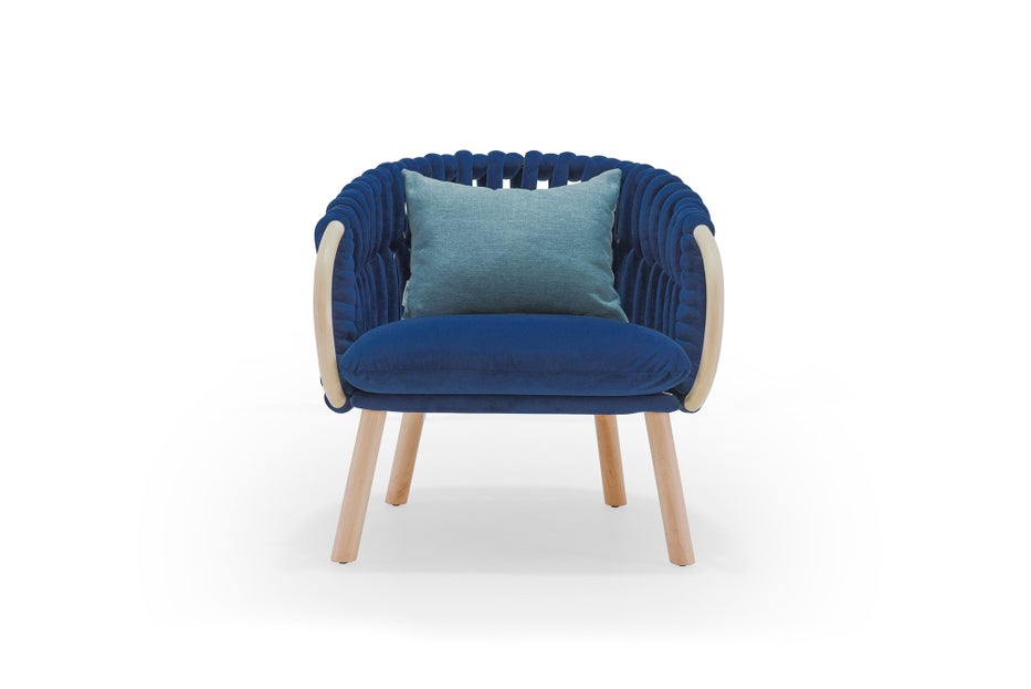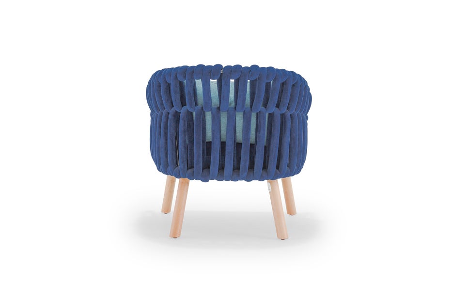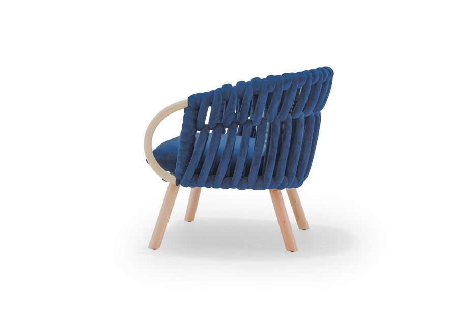 The Knit collection ignites our never ending love for Nordic woodcraft and needlework. Soft and plush fabric tubes are woven over a metal frame and capped with finely crafted wooden legs. We added a tropical touch by adding bent rattan arms to this woven classic. Colours available: Chestnut/Deep Green/Black/Ivory/Pebble Grey/Royal Blue