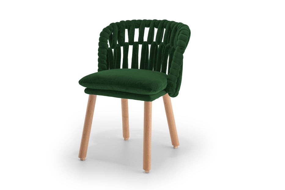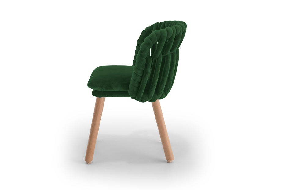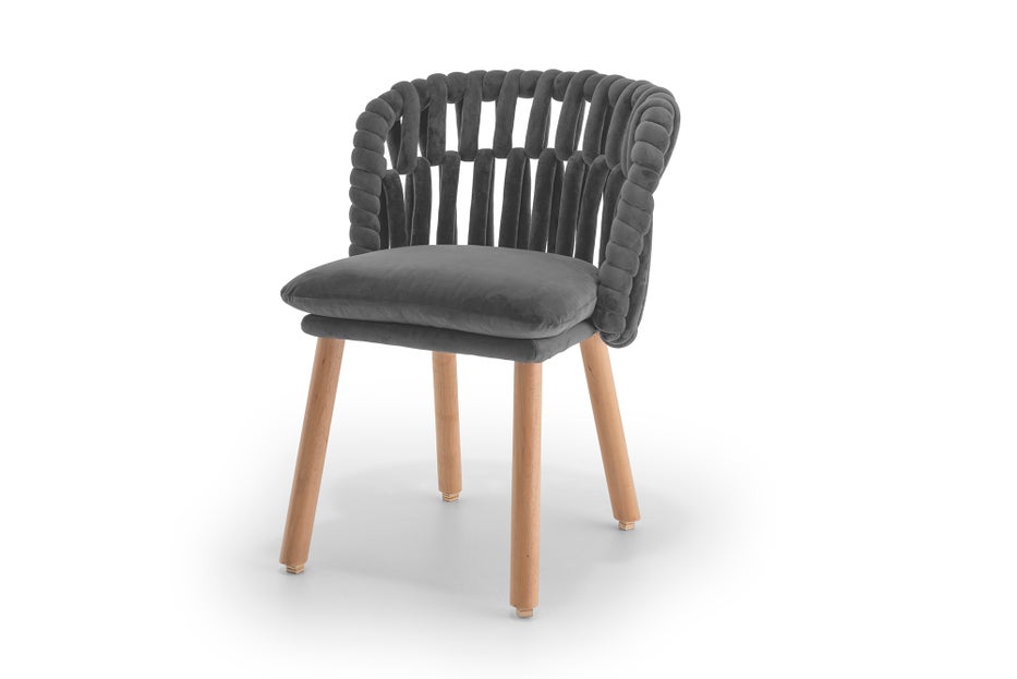 The Knit collection ignites our never ending love for Nordic woodcraft and needlework. Soft and plush fabric tubes are woven over a metal frame and capped with finely crafted wooden legs. Colours available: Chestnut/Deep Green/Black/Ivory/Pebble Grey/Royal Blue
