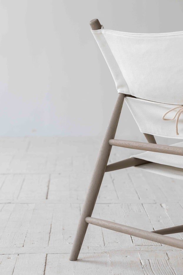 The Jones collection, from May Time, is a range of solid wood furniture. Manufactured from reclaimed pine, elm and oak with the surface completed by hand. This Belgian designed collection shows fine craftsmanship. Gently cushioned with a removable cotton canvas seat and back, this chair cradles you in tranquil comfort - where simplicity becomes artistry and comfort transforms into a serene sanctuary. Crafted with an oak frame that whispers of nature's strength and adorned with a removable seat and back, this Simple chair is the epitome of effortless elegance.