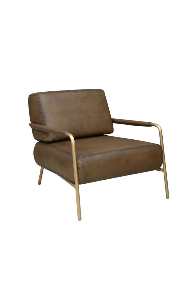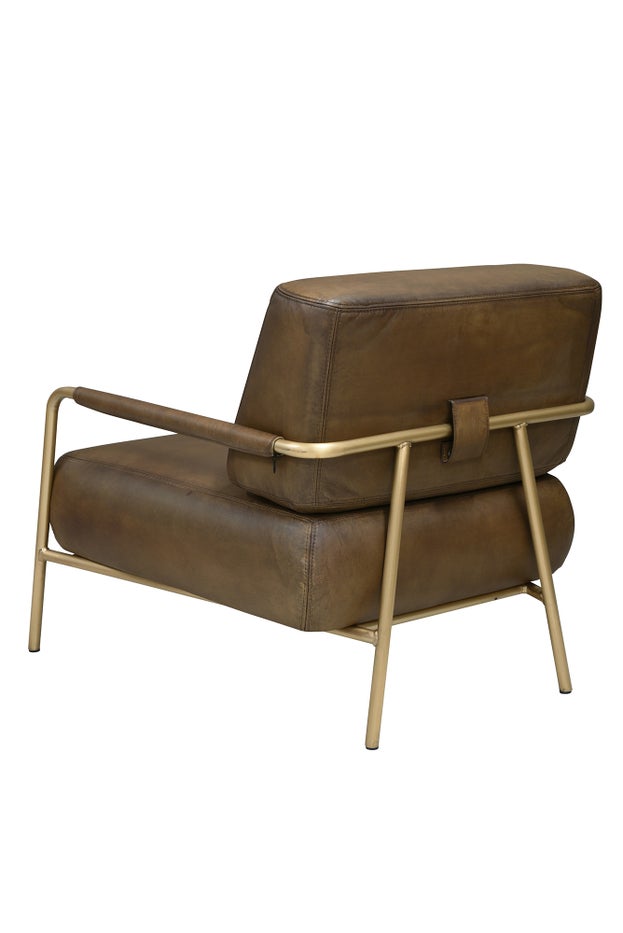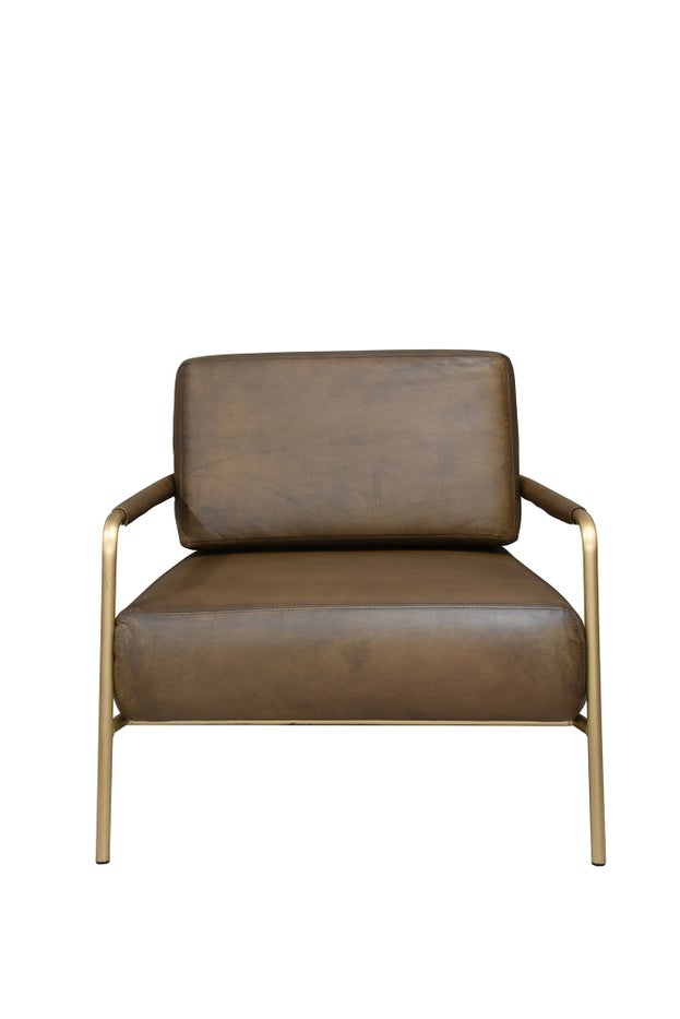 Elevate your interior decor with this Pure Furniture Sinclair Chair in rich Olive coloured Buffalo Leather. The perfect combination of Italian tanned leather and stylish brass frame, a fusion of comfort and style. Pure Furniture is founded by true furniture enthusiasts. Hand crafted in Romania from the finest materials available; known for their use of the finest top grain genuine buffalo leather, tanned and hand coloured in Italy, the leather is thick, rich and full of character.