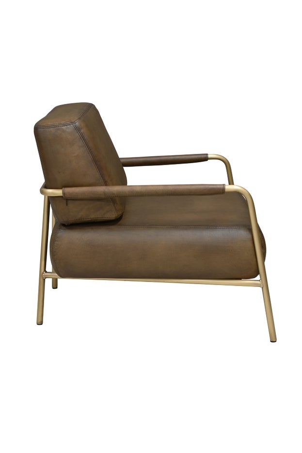 W720 D750 H740 AH505 SH380 Pure Buffalo Leather in Matt Light Olive Brass Metal Frame
