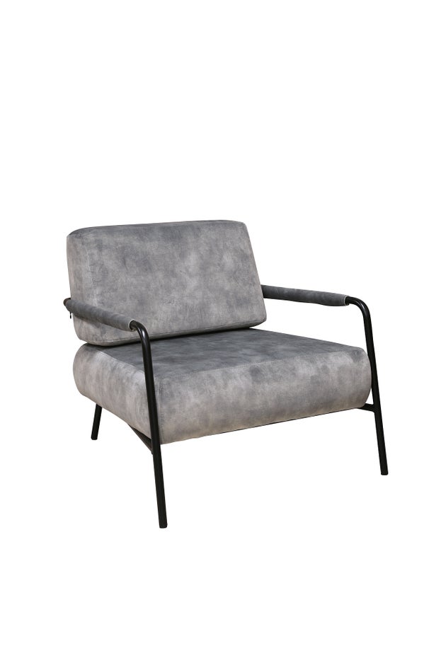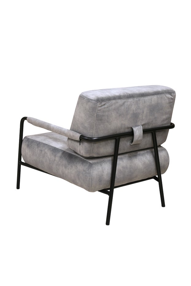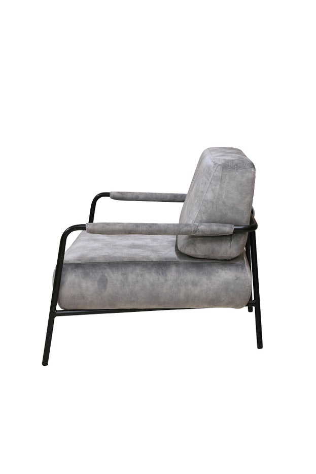 W720 D750 H740 AH500 SH390 100% Polyester Knitted Velvet in Steel Grey Black Metal Frame Martindale of 88 000 Colour fastness of 4-5