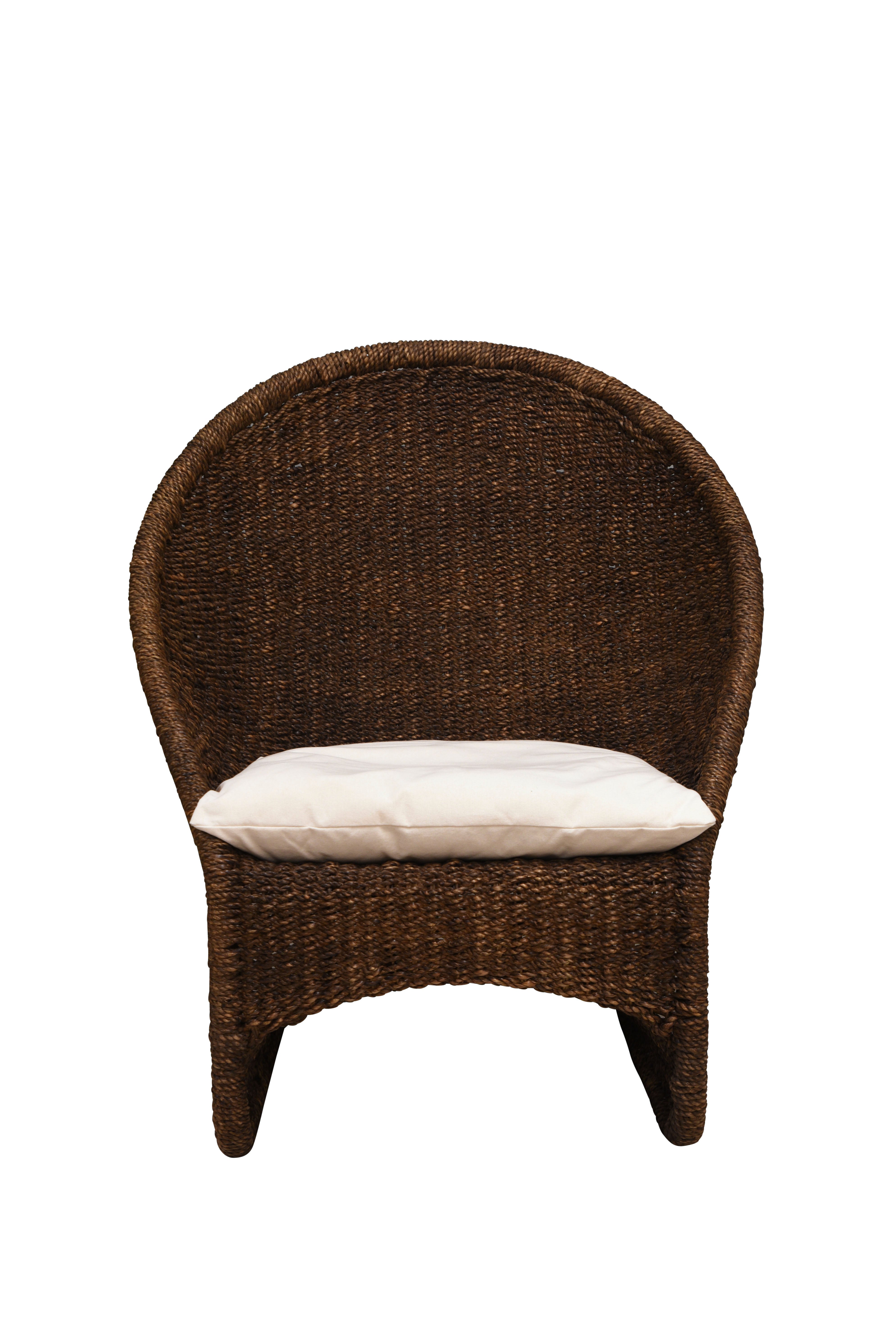 This beautifully handwoven Scoop chair features seat and back cushions for comfortable relaxation. The unique design is inviting from the front and elegant from the back, making it a delightful addition to your space. The generous size and eye-catching backrest provide a comfortable seating option.