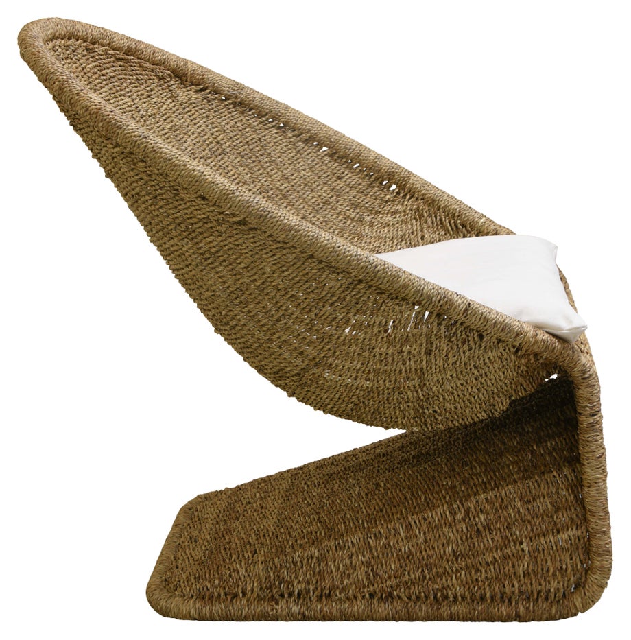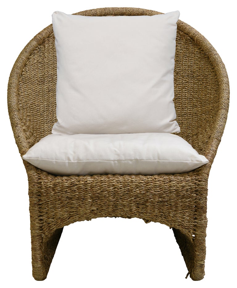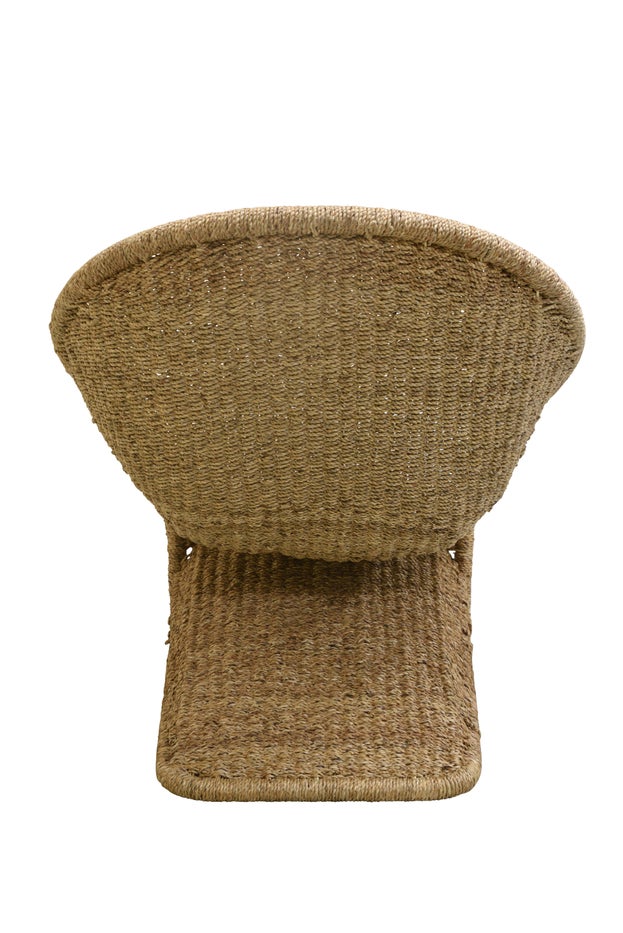This beautifully handwoven Scoop chair features seat and back cushions for comfortable relaxation. The unique design is inviting from the front and elegant from the back, making it a delightful addition to your space. The generous size and eye-catching backrest provide a comfortable seating option.