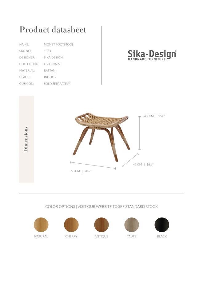 Indoor use. Our Sika rattan furniture requires no maintenance but can be wiped with a lightly dampened cloth if needed.