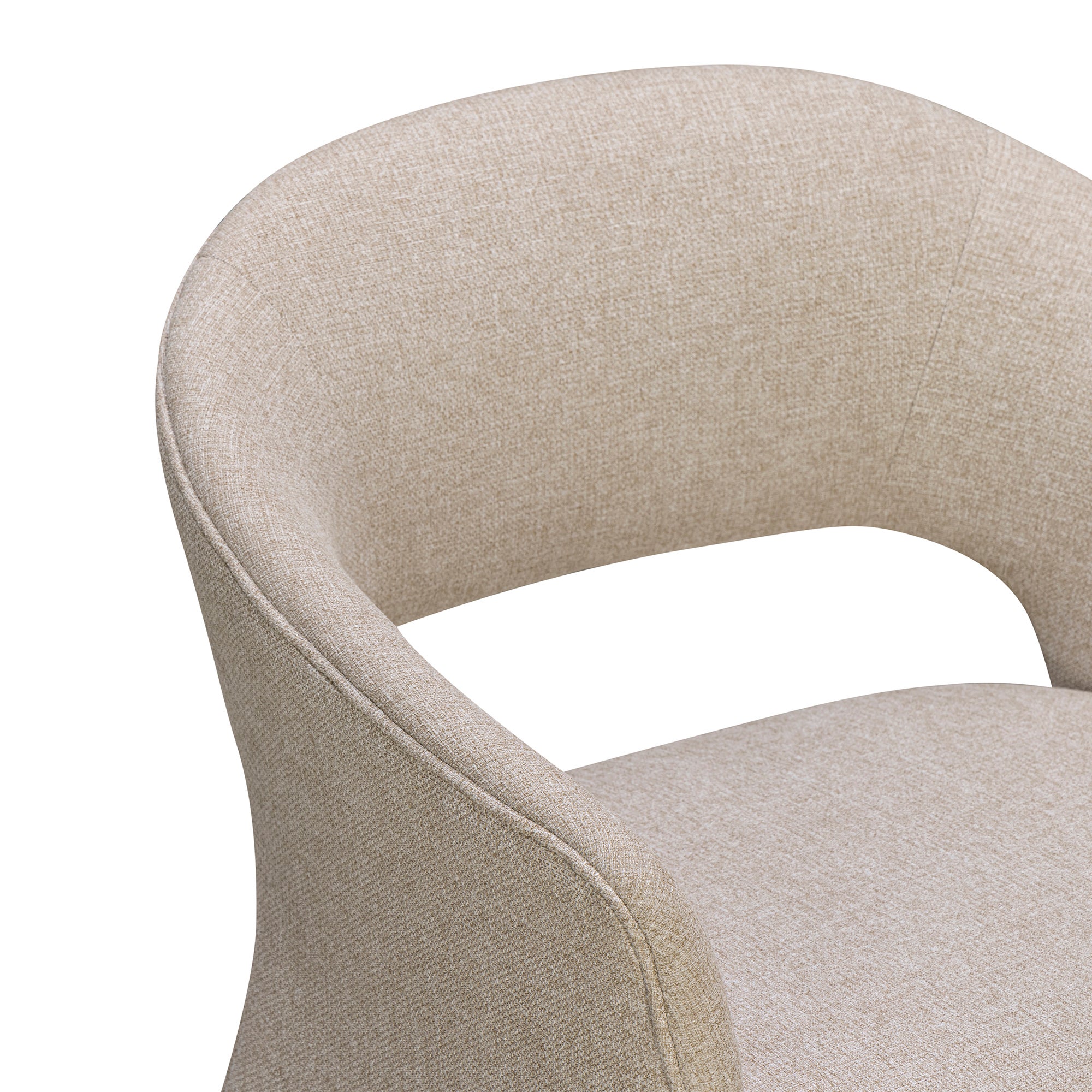 The Petra Chair combines timeless Danish design with robust, commercial-grade construction. Its curved backrest extends into subtle armrests, featuring an open lower-back detail that brings a light, elegant profile. Upholstered in a durable sand-coloured fabric with a 90,000 Martindale rating, this chair aesthetically pleasing for the home, while also built to withstand frequent use in restaurants, cafés, and high-traffic interiors. Black plastic glides protect floors while maintaining smooth movement. With meticulous construction and understated Scandinavian lines, the Petra Chair delivers both style and reliability.