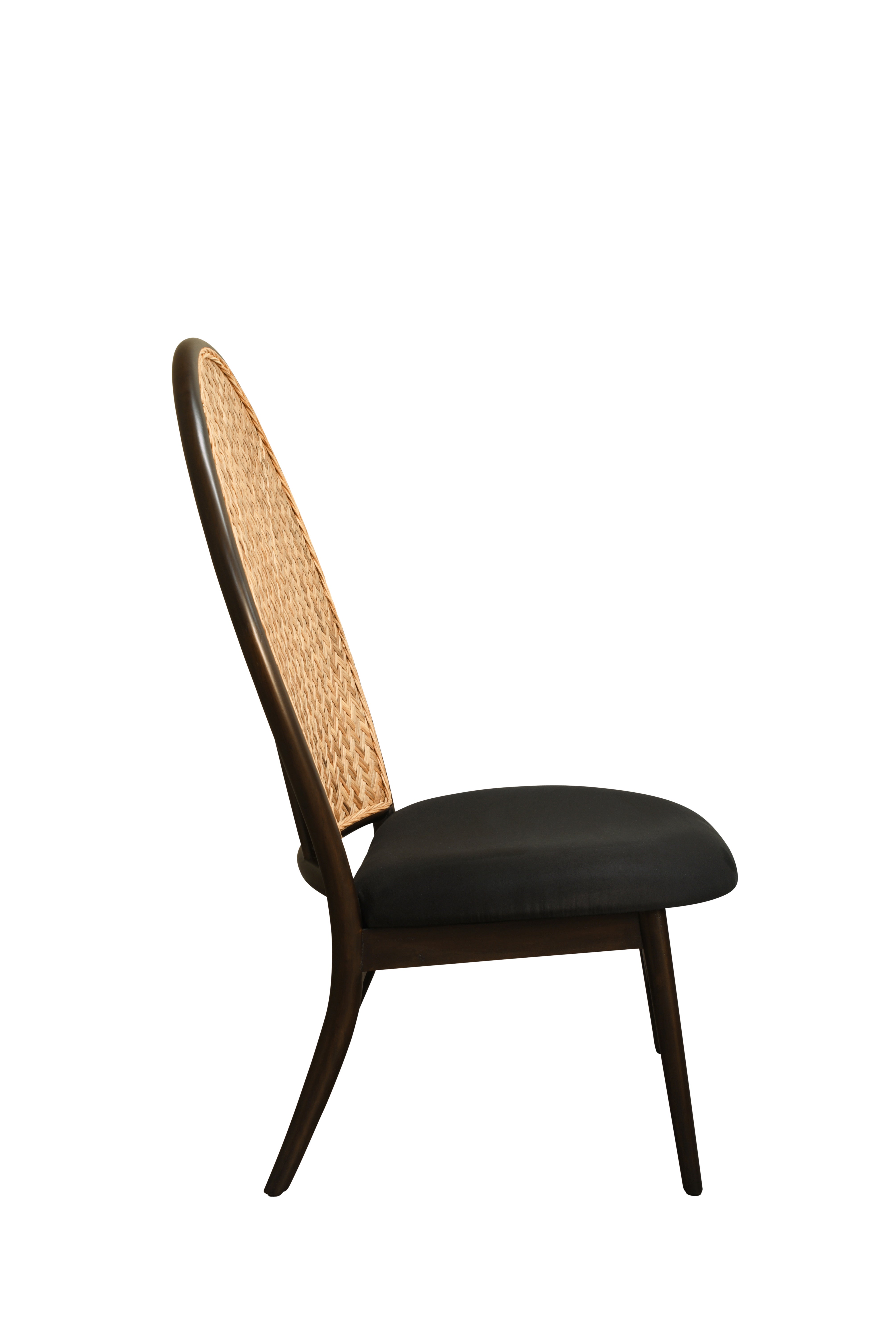 The Forio Chair from Triboa Bay allows you to bring the beauty of natural materials indoors with a piece rooted in laidback sensibilities. The back of the chair has a curved wooden frame with a zigzag weave of natural cane, while the seat hosts a comfortable thick cushion upholstered in a lightweight fabric with a linen like touch and feel. Stained black finished frame, natural weaving and twice onyx fabric upholstery make this chair stand out as a one of a kind.