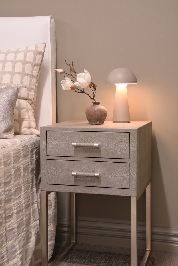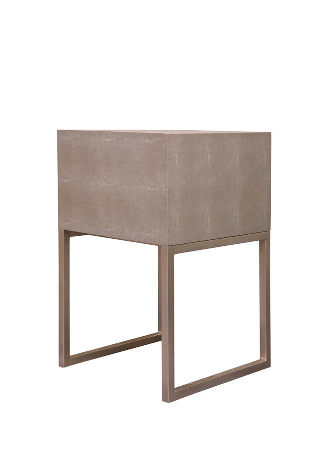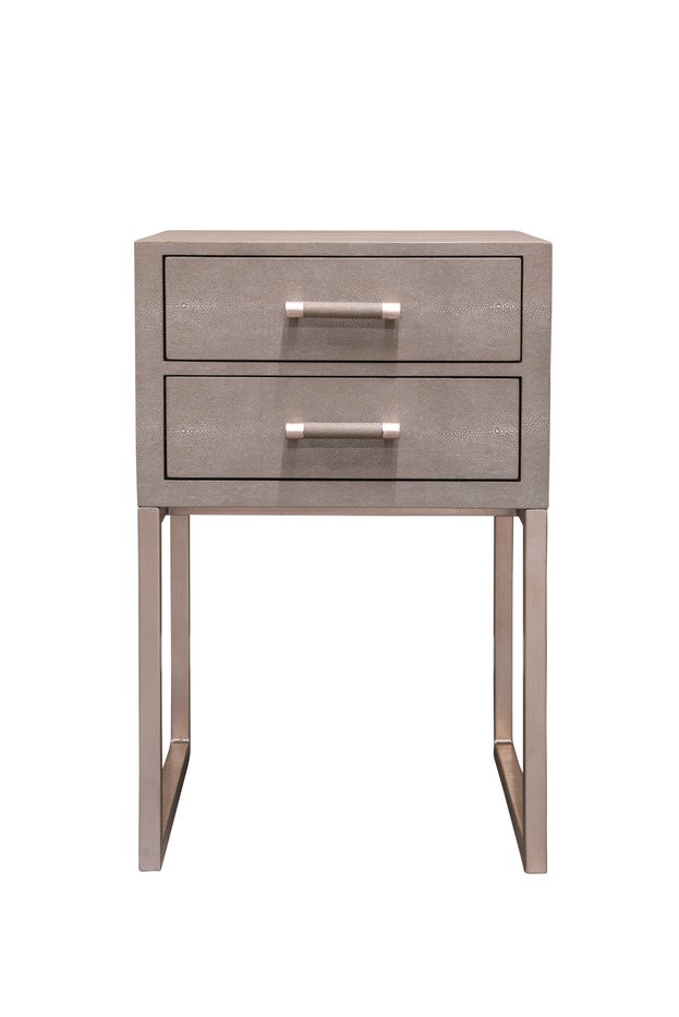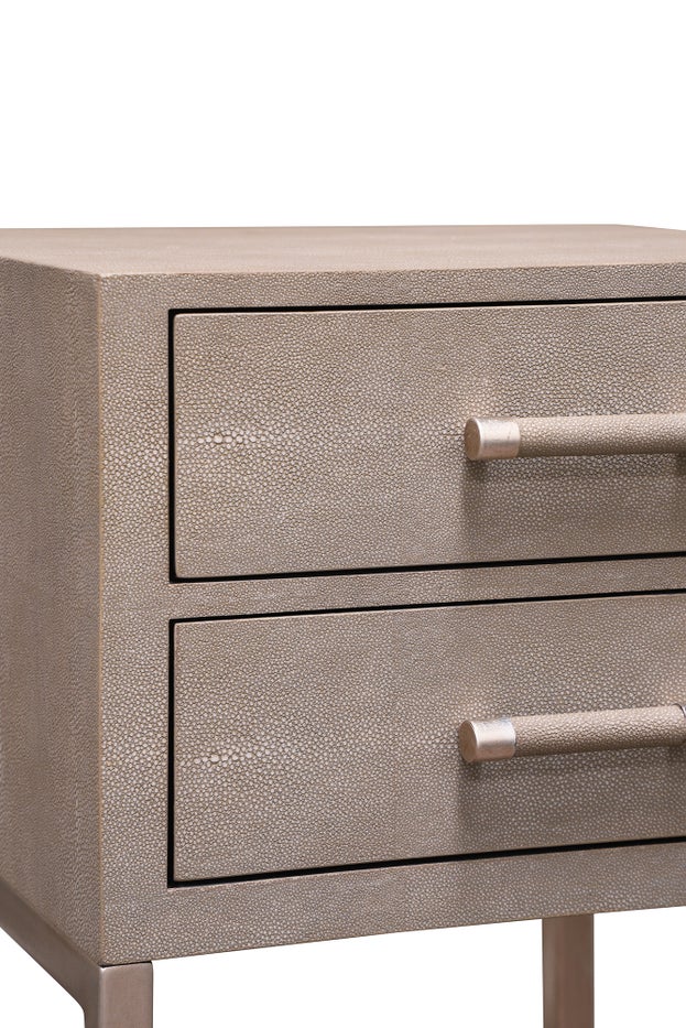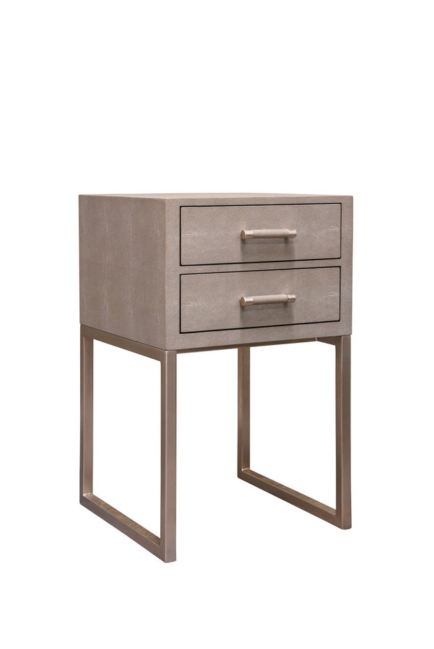 CLARENCE Side Table w/2 Drawer - Taupe Shagreen