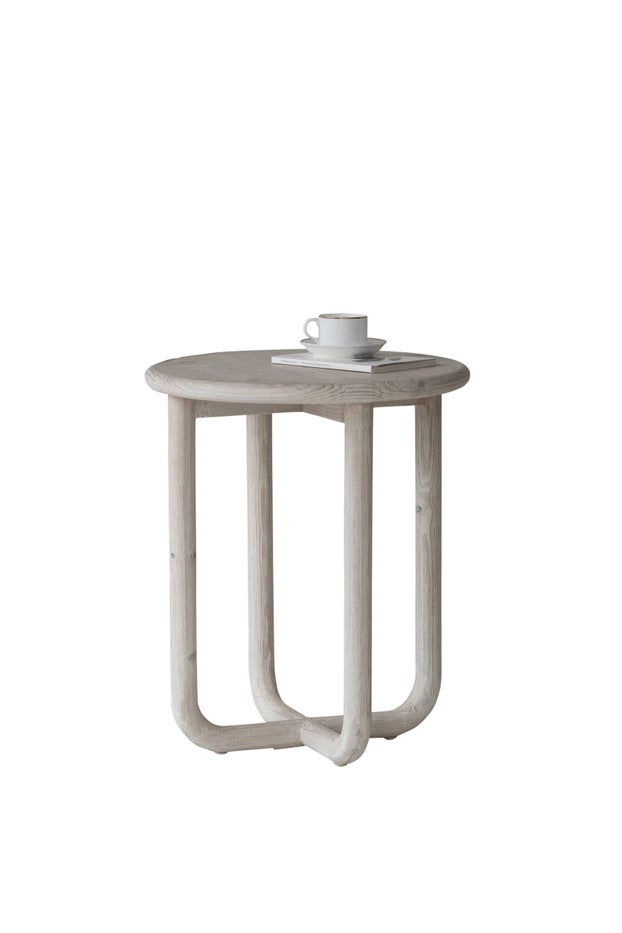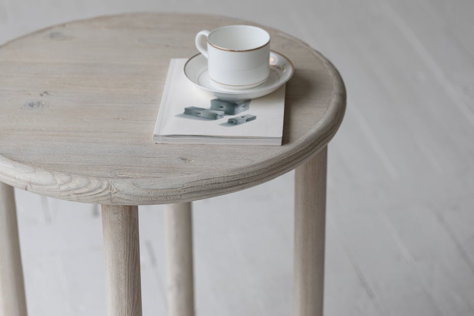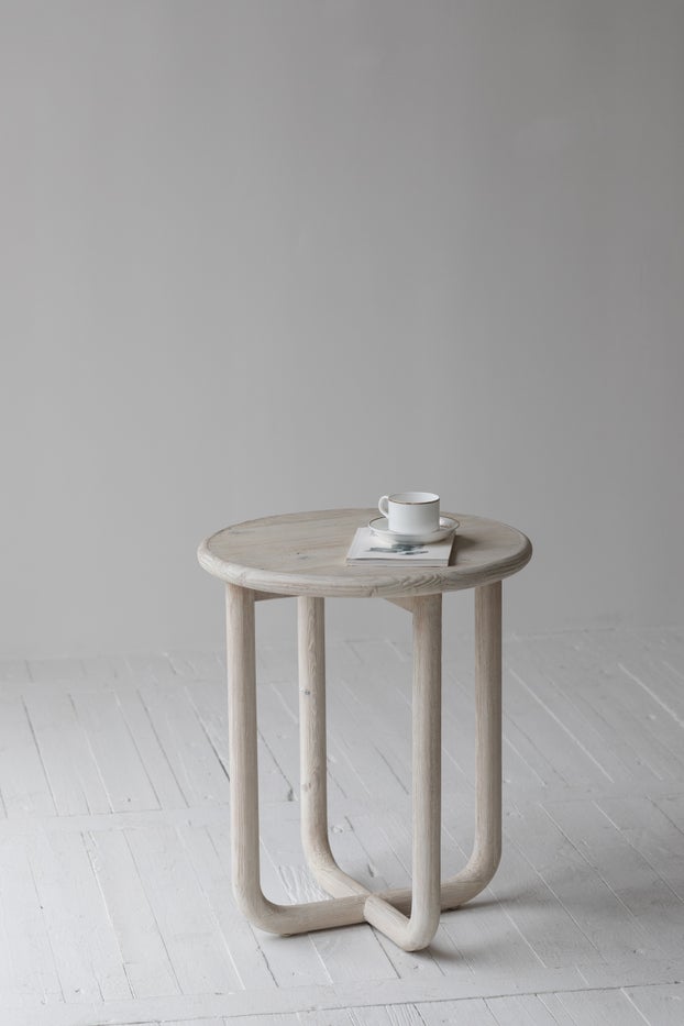 The Jones collection, from May Time, is a range of solid wood furniture. Manufactured from reclaimed pine, elm and oak with the surface completed by hand. This Belgian designed collection shows fine craftsmanship. The Cross side table is crafted from recycled pine and is in a grey/white finish.