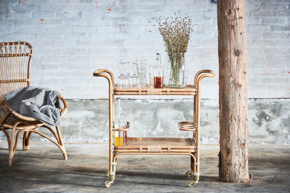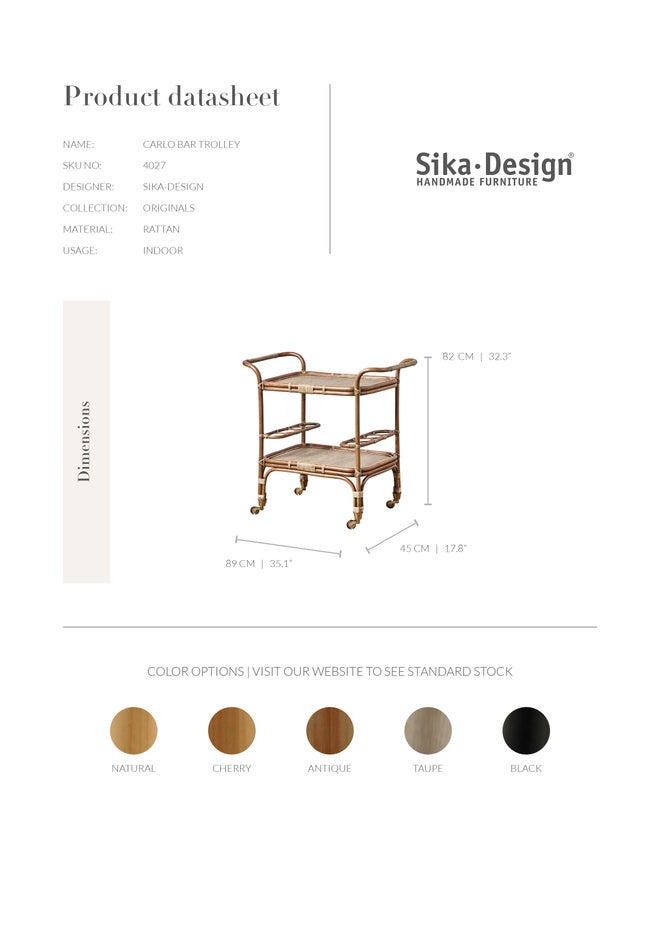 The Carlo trolley from Sika Design is a piece of furniture that is embedded in quality, produced in a material that provides a nice warm atmosphere and at the same time is incredibly functional. Consisting of handmade bindings on a frame of rattan woven by skilled wicker workers, use th Carlo Trolley in the living room or kitchen as an extra disposal table or serve your drinks directly from the trolley.