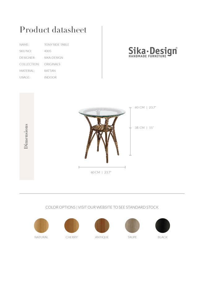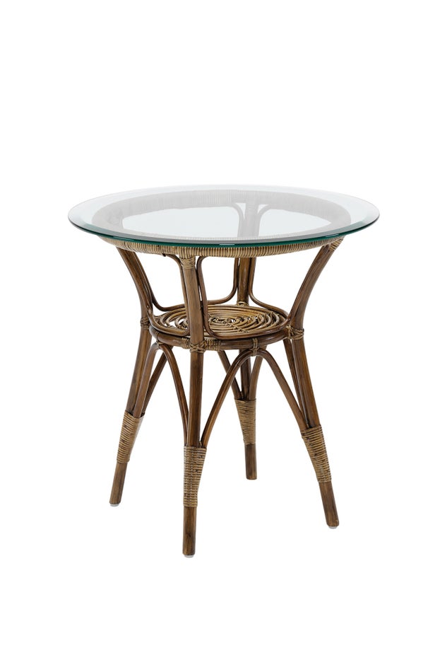 SIKA Originals Tony Rattan Side Table 60cm w/Glass Top - Antique