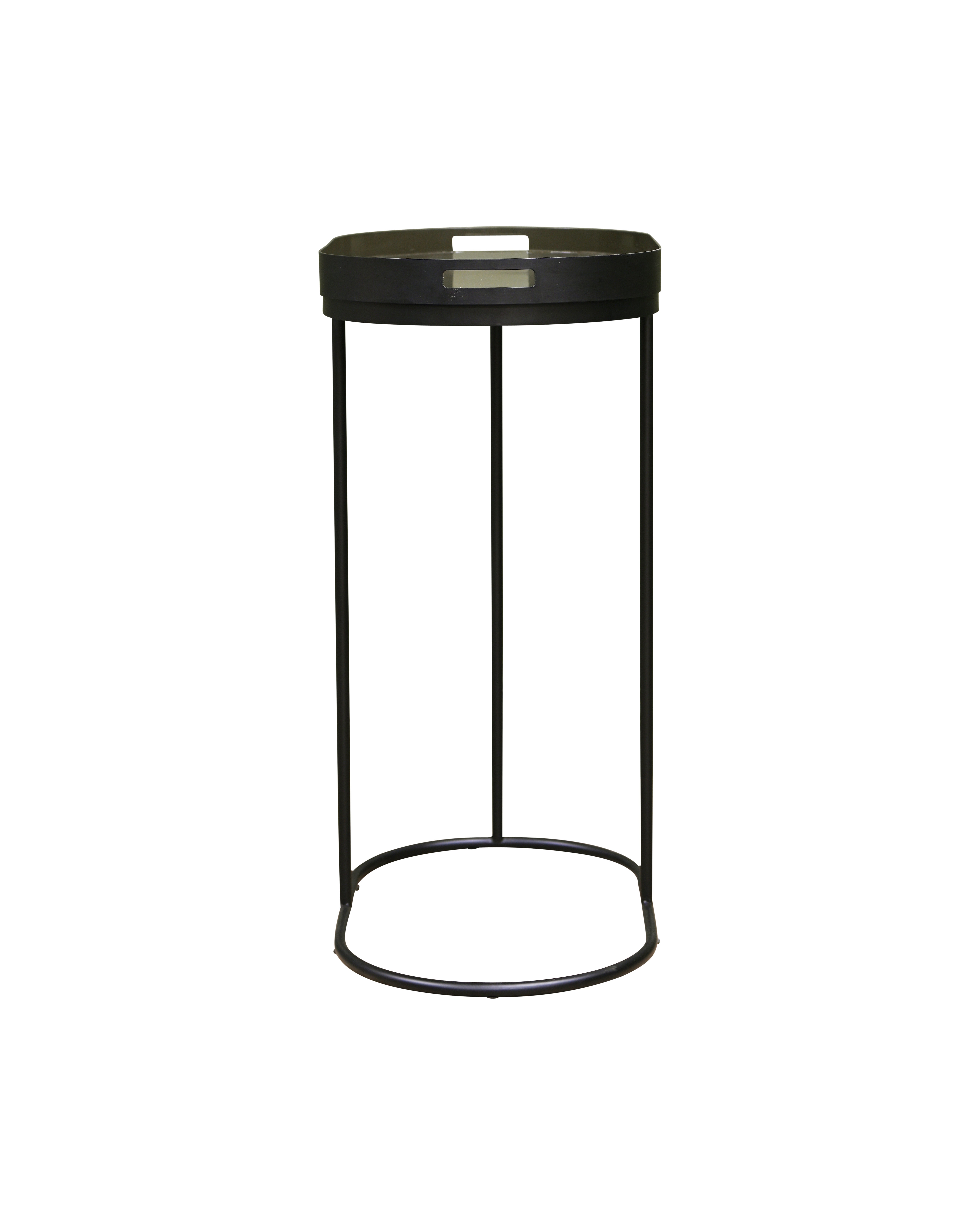 A versatile side table, easy and lightweight to move around. Features a removable tray with cut out handles, which fits neatly over the table top and can be easily removed to reveal a black table top. Perfect when moving around to serve drinks or snacks, or a TV dinner. The tray is finished in a stylish army green, while the table is all black. With three leg supports, the STUDIO Arlo tray table is sturdy and suitable for most settings.