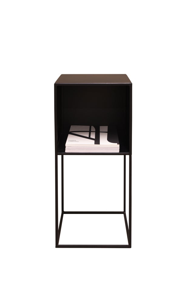 Our Studio range is minimalist metal furniture - ideal for apartments or smaller spaces. These are handmade and hand finished. A bedside cabinet of black metal with a sturdy design - space for your bedside light, alarm clock and reading material.