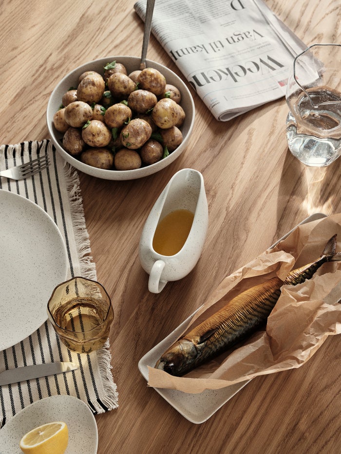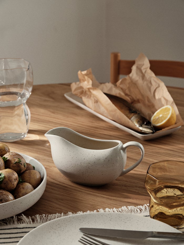 Indulge in the creamy allure of Nordic Vanilla, a collection by Broste Copenhagen that emanates understated elegance. Inspired by the popular Nordic aesthetic, these stoneware pieces feature a smooth surface, reminiscent of vanilla milk speckled with charm. Curvy and cute the Nordic Gravy Bowl is just the saucy novelty your kitchen needs. It is just as good for rich gravy as for a chilled pea soup or sweet custard cream.
