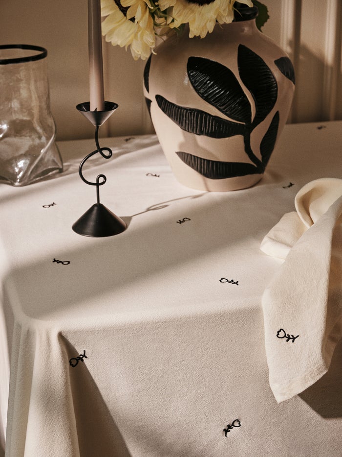 The Mai tablecloth and napkins from Broste Copenhagen feature elegant, modern embroidered flowers that bring a refined touch to any table setting. With a contemporary floral design, this collection effortlessly enhances the dining experience, creating a warm and inviting atmosphere. The matching napkins complete the look, making it easy to set a beautifully coordinated table for both everyday meals and special occasions.