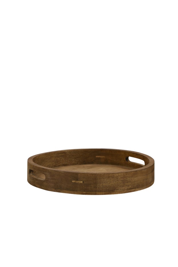 Embrace the rustic charm of our sturdy wooden tray, meticulously crafted with cut-out handles for easy carrying. Its simple yet classic design exudes elegance and a touch of rustic allure, adding warmth to any setting. Handmade in India by skilled artisans, each tray is crafted with meticulous attention to detail, ensuring both quality and durability. Whether you're serving breakfast in bed or displaying decorative items, this versatile tray is designed to enhance your enjoyment and add a rustic touch to your everyday experiences. Embrace the beauty of timeless craftsmanship with our round wooden tray.