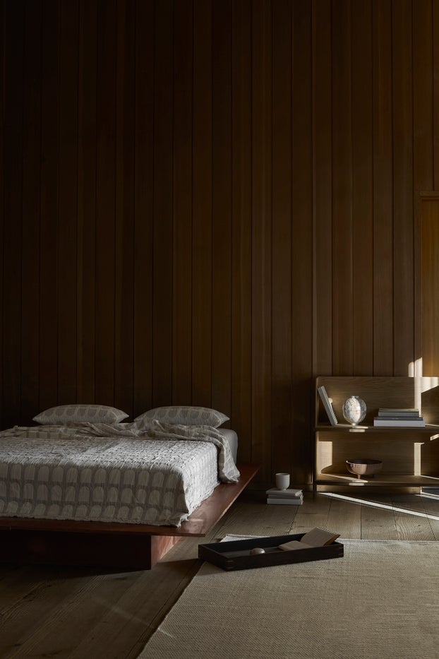 In Kristina Dams endeavour to translate sculptural minimalism into every aspect of the home, she has designed a line of delicate textiles with calm, looming aches – a beloved and enduring object in saturated hues. The Arch series is an elegant and ultra-soft warp and weft woven pillows, and throws made in heavy cotton in monochrome colours with decorative, brushed fringes.