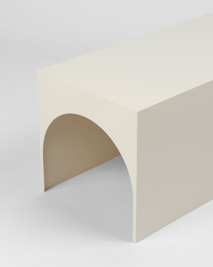 The Arch table from Kristina Dam Studio is inspired by archways and vaults and is made from powder coated steel. The powder-coating is rough giving the table a textured and matte look.