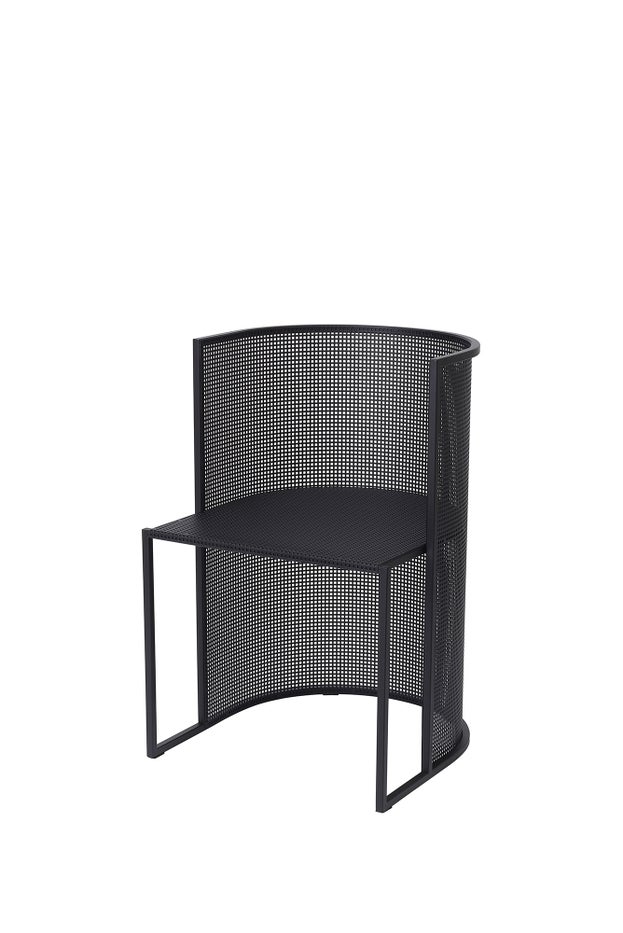 The Bauhaus Dining Chair from Kristina Dam Studio is an elegant and architecturally inspired chair that is suited for modern interior and exterior spaces. Made from perforated powder-coated stainless steel the chair appears transparent and light while still being comfortable. Suitable for indoor and outdoor use. Designed to be paired with the Bauhaus Dining Table. Chair cushion also available.