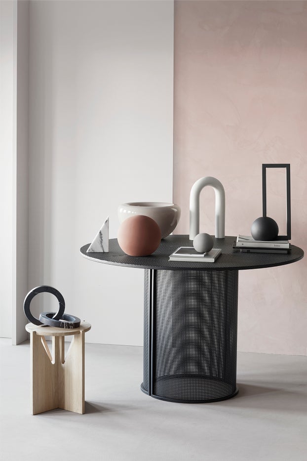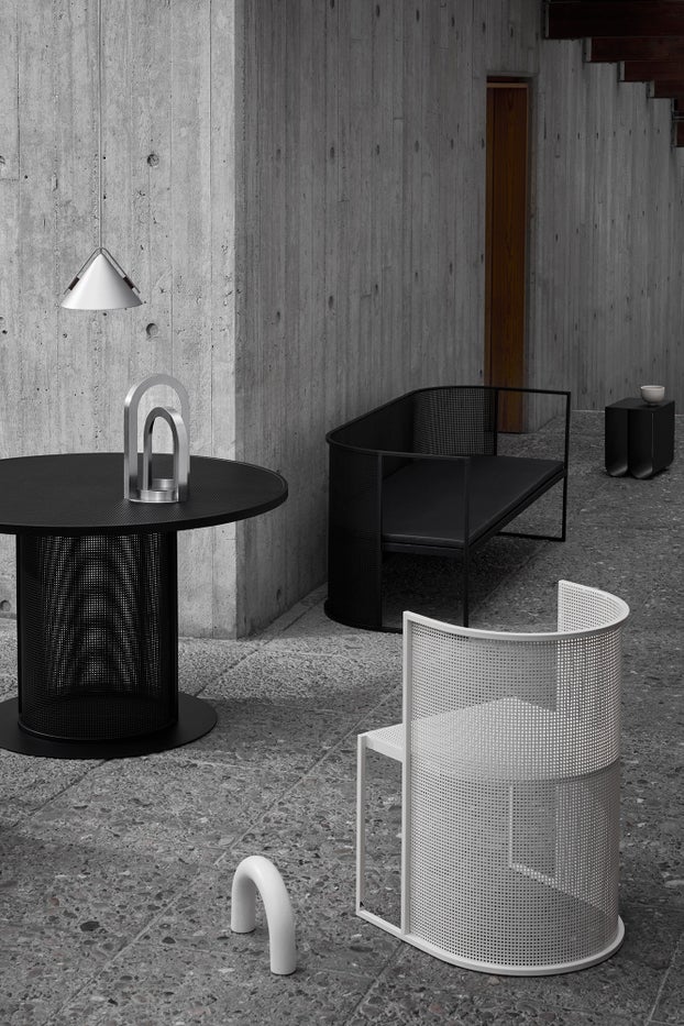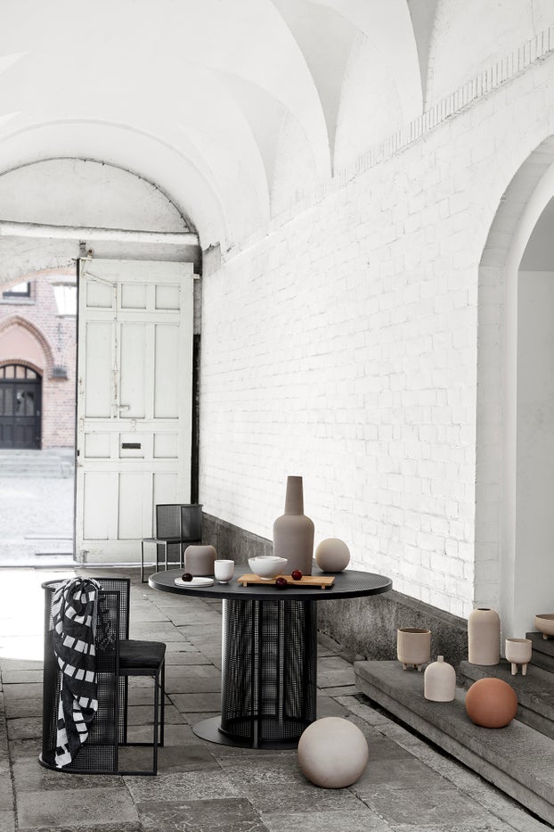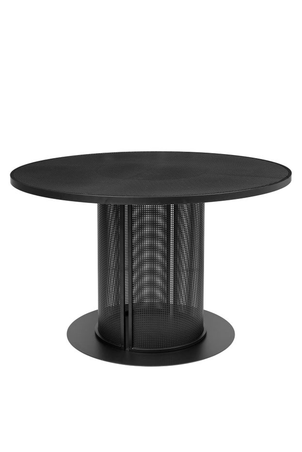 A splendid round table with a clean and straightforward design from Kristina Dam. The perforated steel used softens the engineered expression. This gives the table a transparent and light appearance, despite the visual expression the table is heavy and suitable for outdoor areas with wind. Since no table legs are in the way of this unique design, you can easily fit many guests around the table – about 6 to 8 people. The Bauhaus Dining Table is made from galvanized steel and treated with a powder coating. This makes it rust-resistant and perfect for outdoor use.