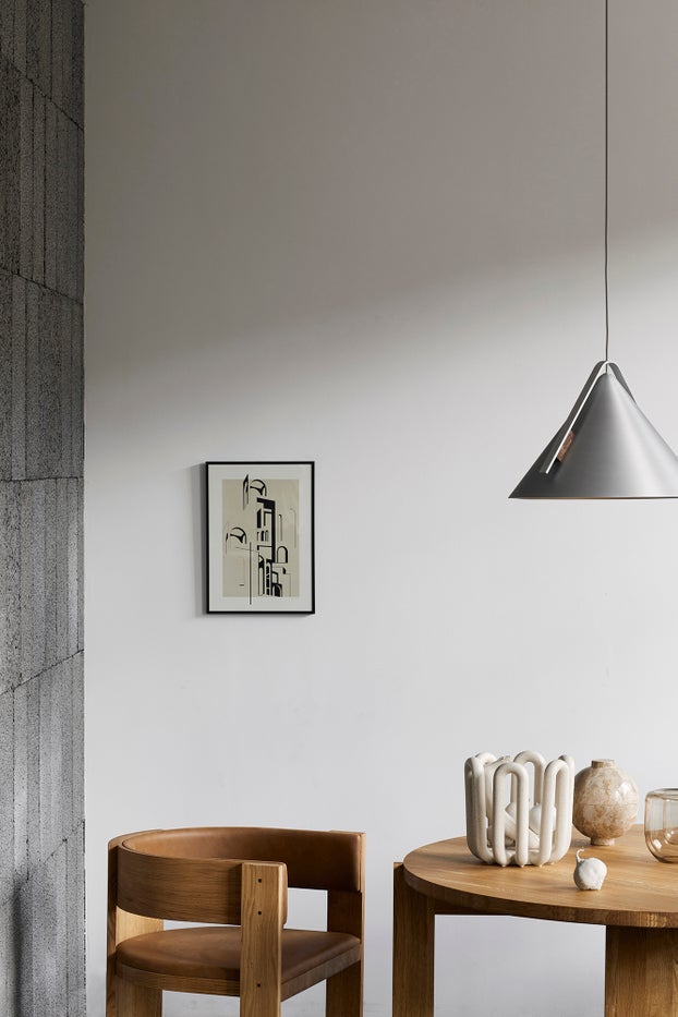 The Cone Lamp from Kristina Dam Studio is crafted from contrasting materials, solid walnut, brushed aluminum and purposeful geometric shapes. A highly sculptural lamp for modern and bold interiors, the cool aluminum cones and warmth of the wooden details is a minimalist contrast done right. The Cone Lamp series ties on the geometric shape that tapers smoothly from a circular base to the apex point.