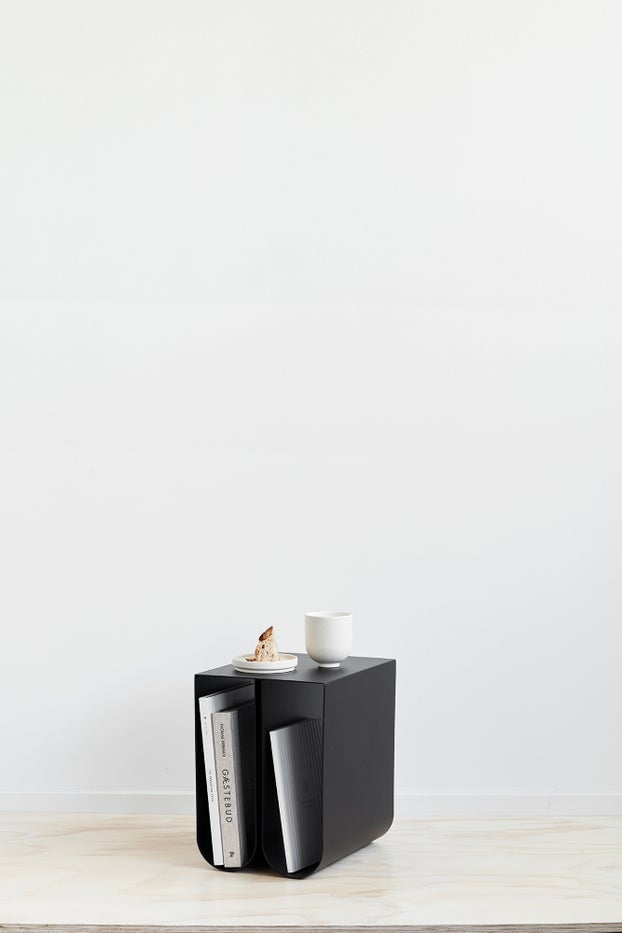 The curved side table, from Kristina Dam Studio, is a beautiful and timeless table that has a sculptural and handcrafted aesthetic. Made of black powder coated steel, the side table can also store magazines in its curved base. A design paying tribute to simplicity. Carefully designed with a modern and twenty-first-century look, its curves are formed in stainless steel.