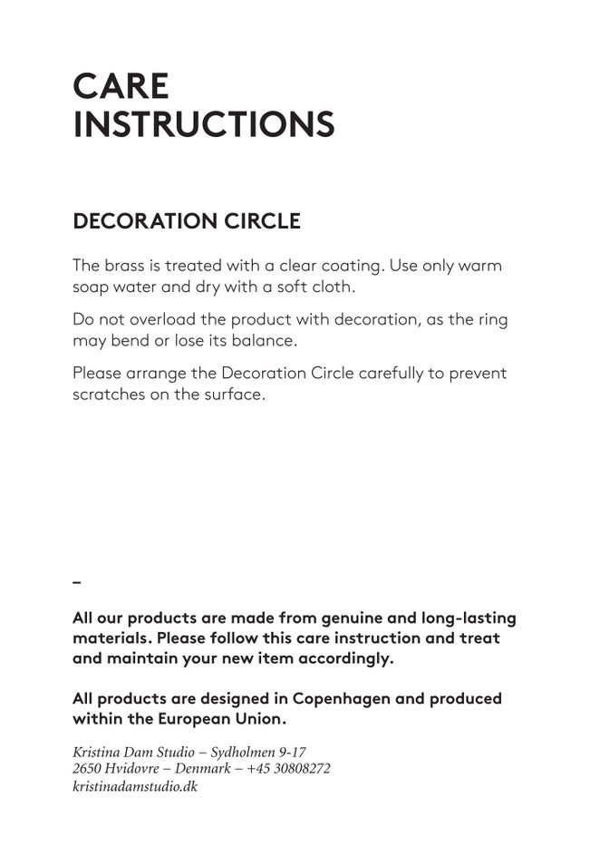 The beautiful chrome surface of the steel base of the Decoration Circle from Kristina Dam, makes a great contrast to the polished brass. The two pieces are simply kept together by the weight of the steel base - an artistic masterpiece.