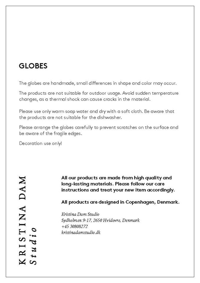 This Globe sculptures from Kristina Dam will make a beautiful grouping of sphere sculptures in your home. The Globes comes in a varying colours and sizes, which will fit into any modern home decor. As simple as a globe is, it is never-the-less a beautiful and delicate form, perfect for styling your home. Use the delightful globe sculptures as mobile design pieces that can easily change the look and appearance of your interior styling in a fashionable way.