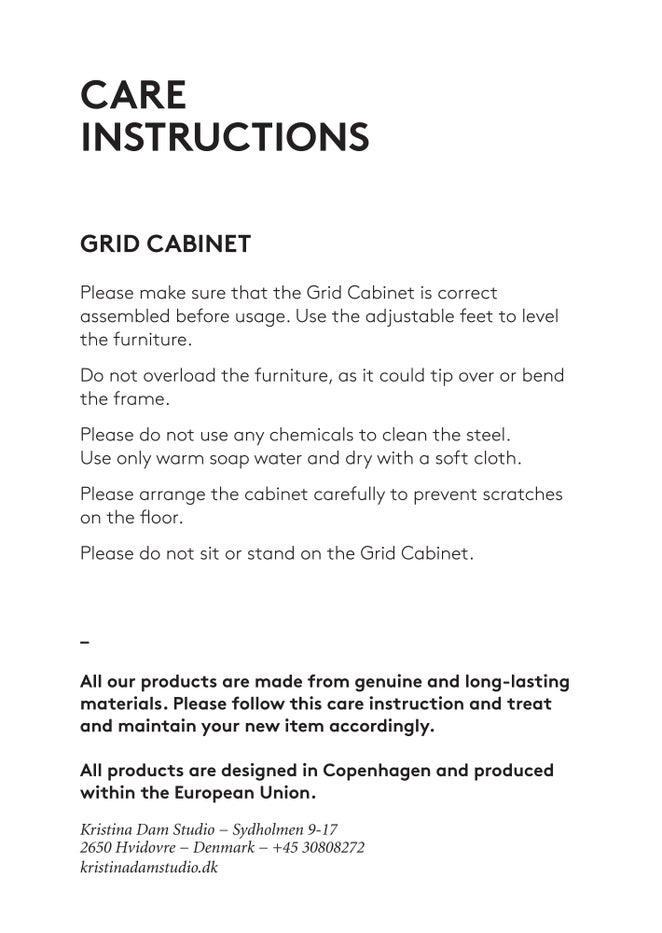 Designed in Copenhagen, Denmark. Made from high quality and long-lasting materials. Please follow our care instructions and treat your new product accordingly. Assemble according to the instructions supplied with product. Do not handle alone as it is heavy to shift and requires a minimum of two people. Take care placing items on the shelf and do not exceed 8kg max capacity per shelf. Clean with soft cloth and warm soapy water only. Avoid any chemicals or harsh products.