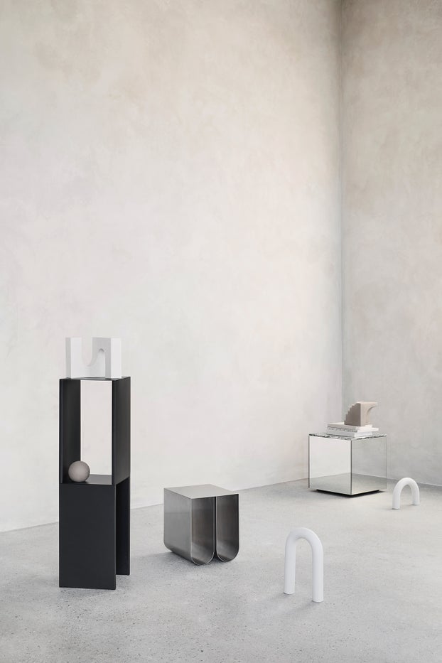 The Pedestal Table from Kristina Dam Studio is a combination of a pedestal and a table. It is an elevated table perfect to display accessories and various items.