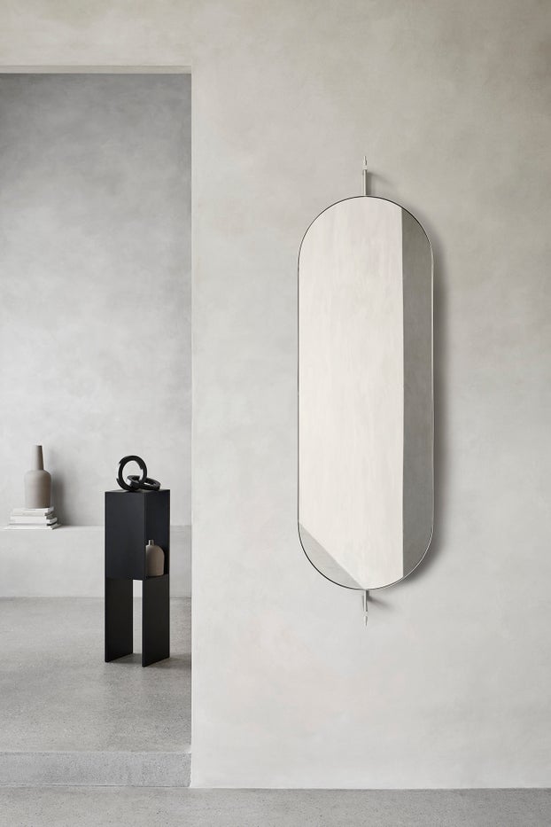 The Rotating Mirror from Kristina Dam is a functional and elegant design for all modern interiors. Based on the premise that less is more, the simplicity of the rotating, wall mounted mirror is apparent. It is designed with a clear reference to the proud heritage of Nordic design. It is a gentle, artistic interpretation of the classic mirror. On the surface is has two hooks where you can hang your clothes. Use the mirror in your entrance, hallway or as a bathroom mirror.