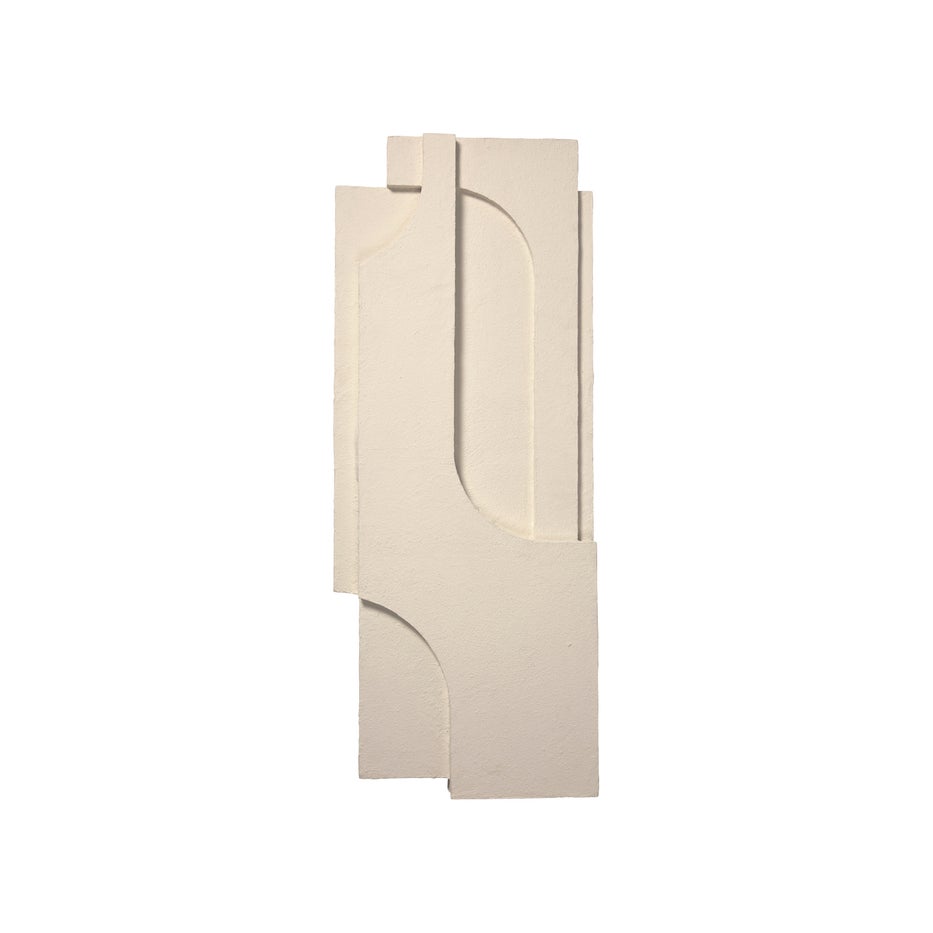 The Serif Relief from Kristina Dam is an interplay between form and material structure created for the wall. The Serif Relief is made by hand and produced from recycled Katran cotton pulp. Cotton pulp is a 100% bio-degradable material made from upcycled cotton fabric waste, and minor differences in shape and colour may occur, making each Relief unique. Cotton pulp is made from waste generated by garment manufacturers. The leftover garments are cut, cleaned and soaked in water to soften the fibers and then ground into a slurry, breaking down the fibers and creating pulp. The pulp is diluted with water and poured onto a fine mesh screen or mold. The water drains away, leaving a mat of fibers which will afterwards transformed into our artwork.