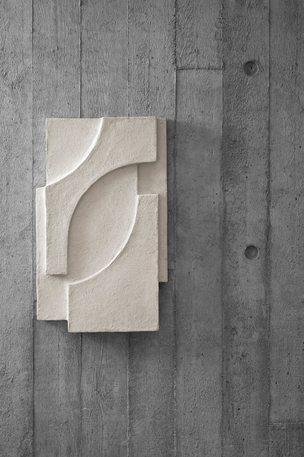 An abstract relief from Kristina Dam. The Serif Relief focuses our attention on elements of Kristina’s early illustrations. An interplay between form, material and light is created on the wall and adds an interesting textured depth to the room. The Serif Relief is made by hand and produced from recycled Katran cotton pulp. Cotton pulp is a 100% bio-degradable material made from upcycled cotton fabric waste, and minor differences in shape and colour may occur, making each Relief unique.