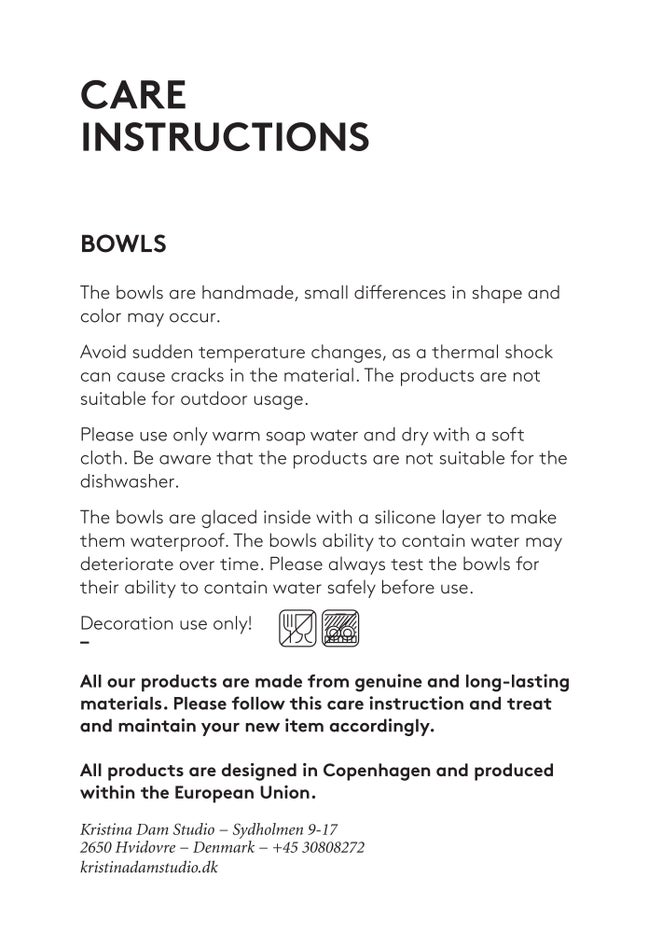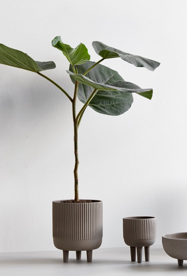 The three legged bowl from Kristina Dam Studio is an eye-catching piece. All bowls in the assortment are made from terracotta with a grey slip (engobe) and the interior is glazed and water resistant. The exterior of the bowl features a textured band, impressed into the clay.