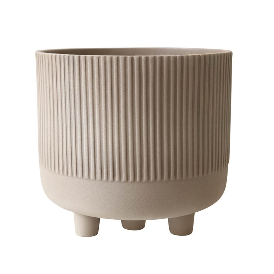The three legged bowl from Kristina Dam Studio is an eye-catching piece. All bowls in the assortment are made from terracotta with a grey slip (engobe) and the interior is glazed and water resistant. The exterior of the bowl features a textured band, impressed into the clay.