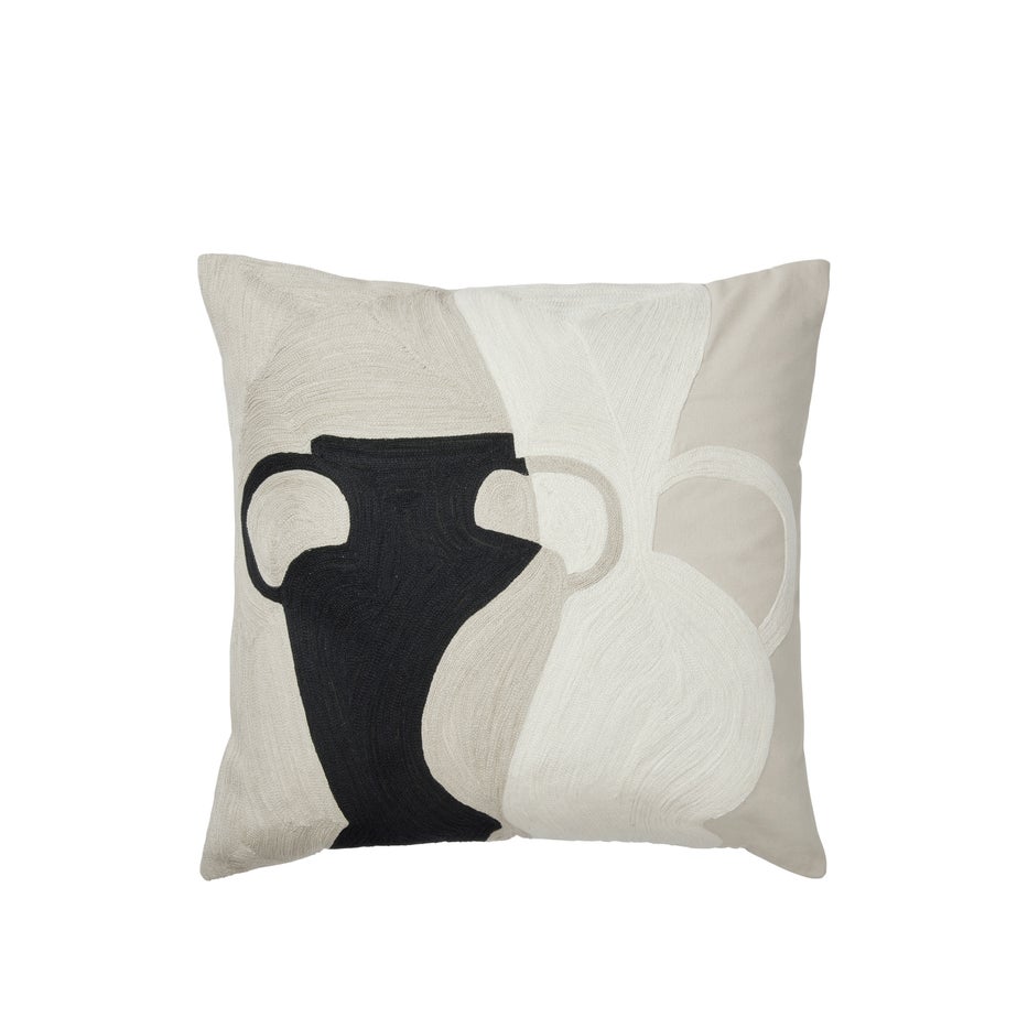 The Eva Cushion Cover from Broste Copenhagen is a Feel Good Product, which you can enjoy guilt free. We love when shapes from the ancient past look fresh and new when placed in a contemporary context. The Eva Cushion Covers are no exception with their graphic prints of ancient vases embroidered onto our soft, sustainable textiles.