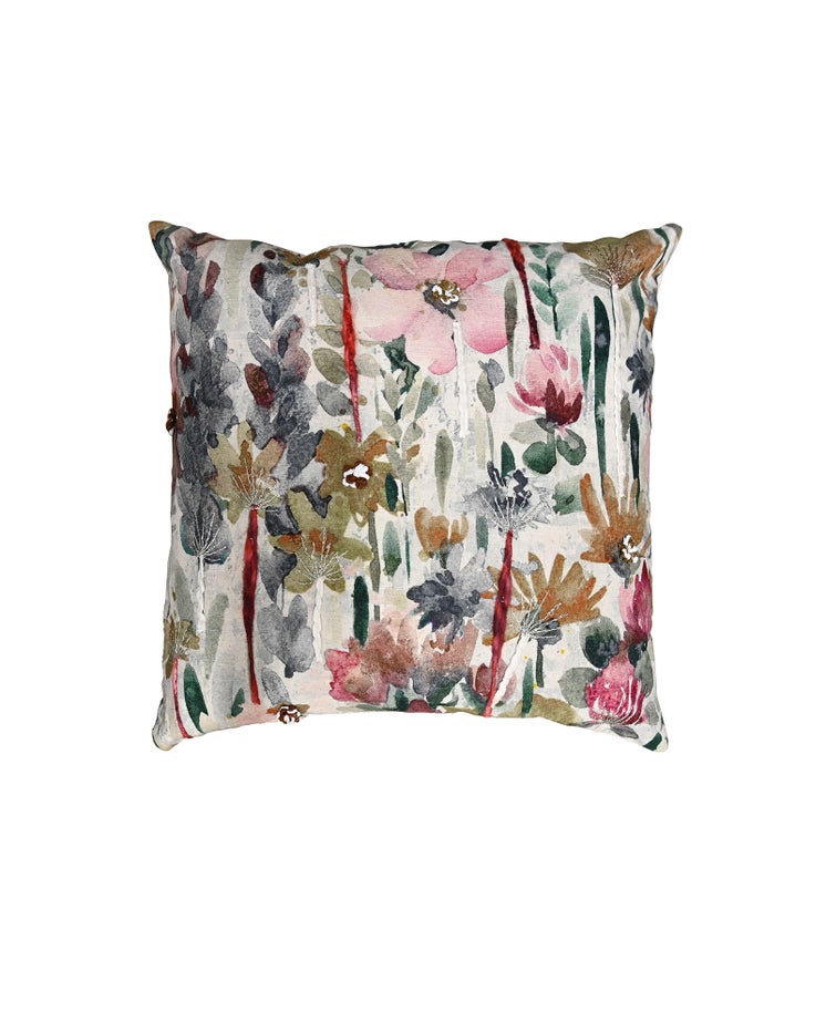 Hand embroidered, printed cushion covers from India. With a unique design of pink florals in 100% cotton, these cushion covers with pops of colour are a stylish addition to your chair or bed. Get 25% off a 50*50 feather inner when ordered together with this cover.