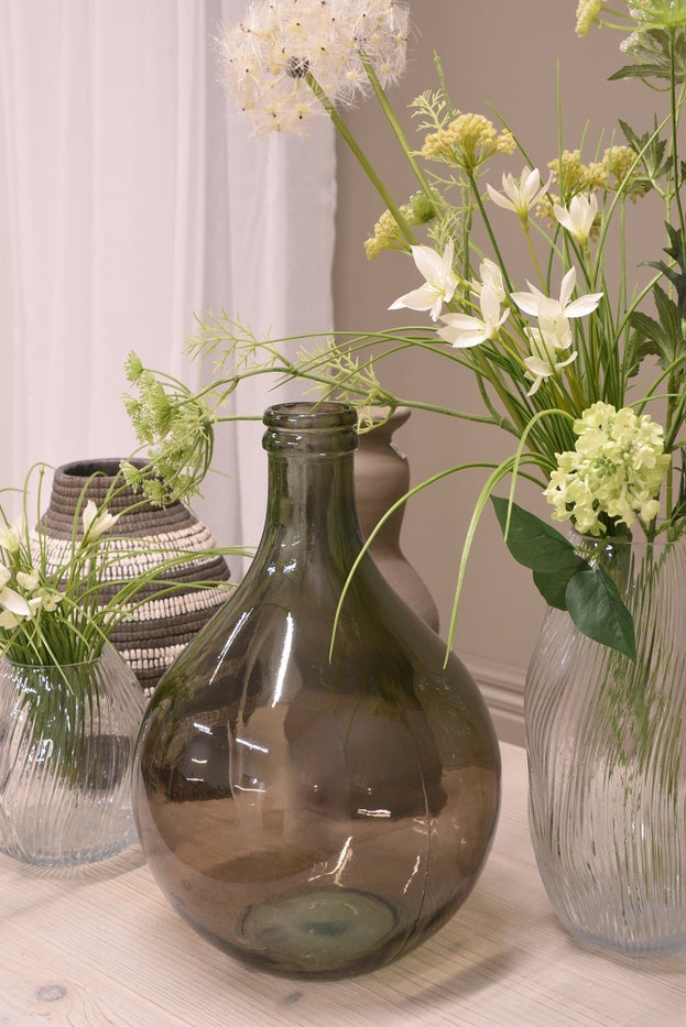 A classic household standard - a clear glass vase with a twist. The decorative finish in the glass helps to hide your flowers stems, allowing the colourful blooms to take centre stage on display.