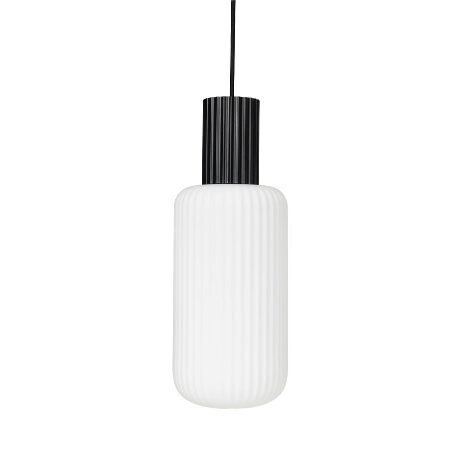 Inspired by the streamline art deco period between functionalism and modernism, Lolly by Broste Copenhagen is a lamp collection with an elegant and delicate silhouette. The collection consists of pendants and table lamps with a beautiful, ribbed surface following the metal base to the opal glass shade, which illuminates the room with a soft and warm light. Includes ceiling rose and wiring. White Opal glass with black metal fitting. Recommended E14 4 watt LED bulb. Cord 3 m