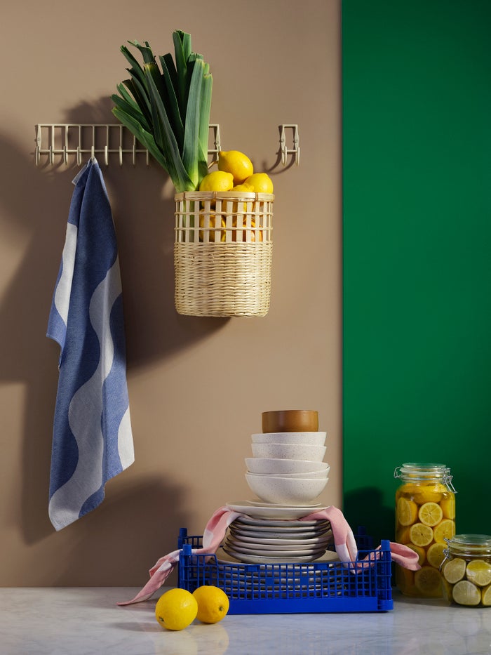 Designed for kitchen accessories or as a minimal coatrack, the curved hooks ensure that coats, scarves, tea towels or kitchen accessories stay in place. Also suitable for small backpacks and toys in kids’ rooms.