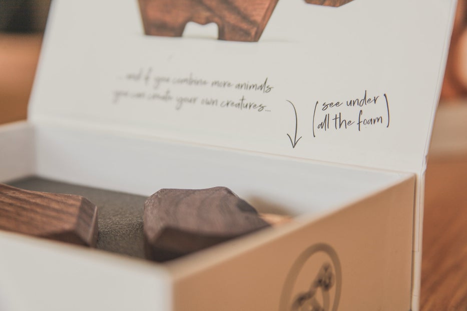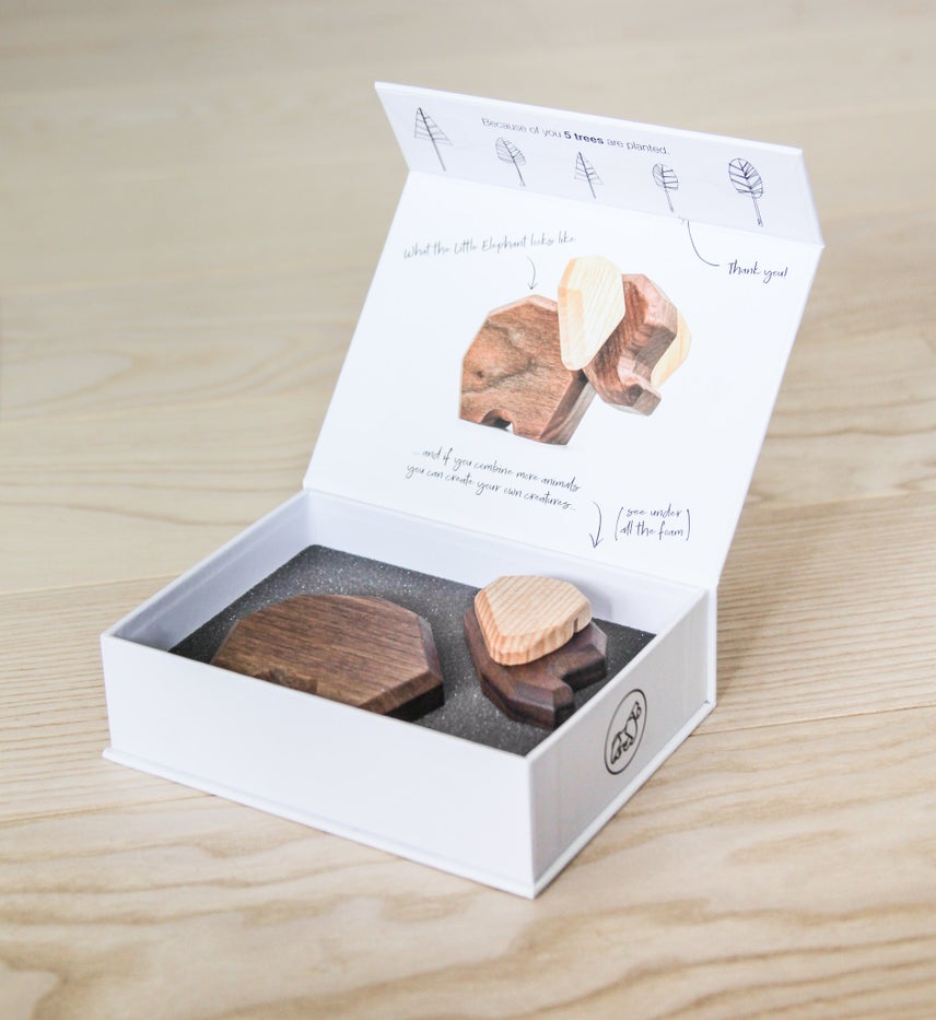 The idea of displaying wooden animals is an age-old Danish tradition, and there are many variations available. Fablewood has taken this idea, and transformed it into a collection of magnetic wooden animals for play and display! The magnets inside allow the animals to be disassembled and reassembled as three dimensional puzzles at your own imaginative will. The real magic happens when you combine and mix animals together.
