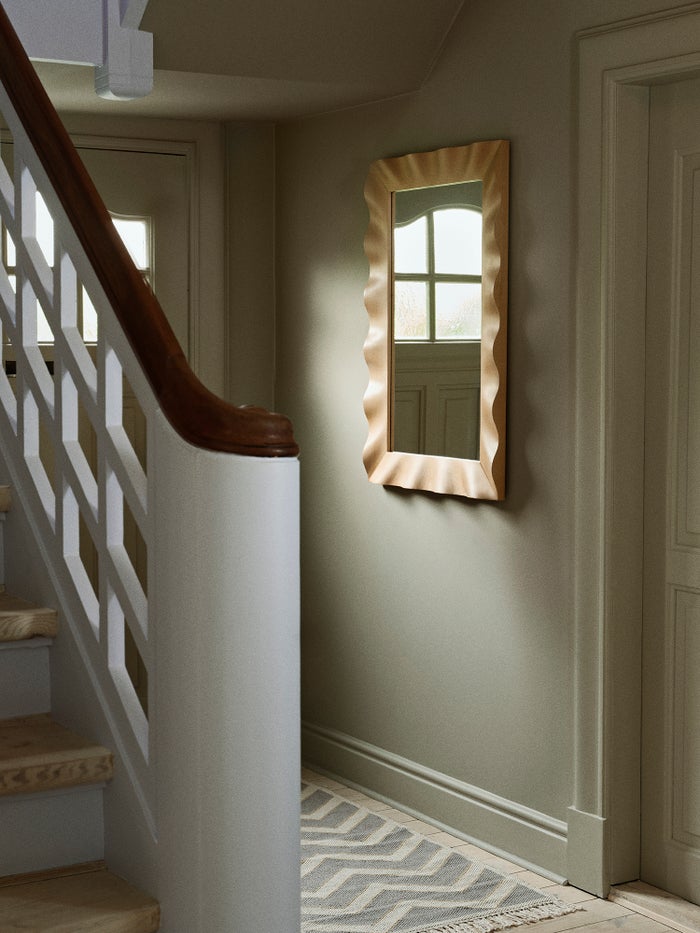 The Wavy Mirror from Broste Copenhagen has a natural coloured Beech wood frame, with a wavy texture to attract the eye. The perfect look for an entranceway, living room or bedroom.