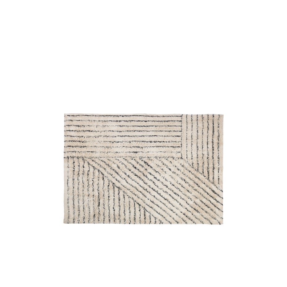 The Elvira rug is a traditional Scandinavian rya with a long and soft pile with a simple and minimalistic pattered. The neutral off-white and black hues ensure its versatility to complement most colour palettes while bringing warmth into any space. The rugs are tufted in 100% cotton and come in three different sizes.