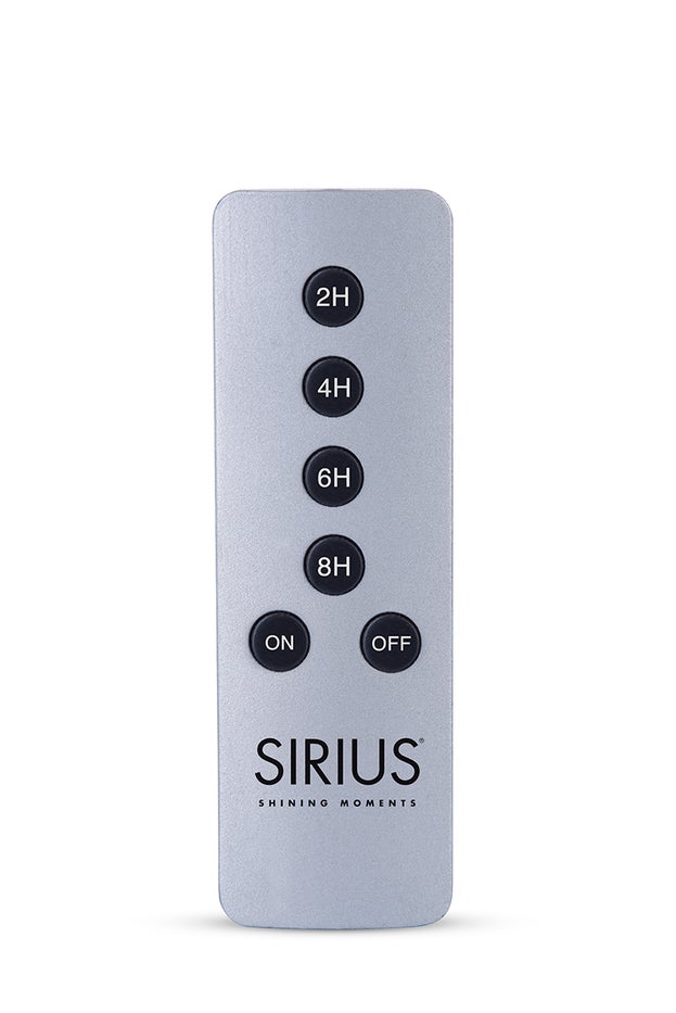 The Sirius remote control combines aesthetics, functionality and usability. It makes it simple and easy to use the on/off function and timer function on selected products. The functionality and aesthetics of the design create a total user experience, and can be used across most of the Sirius range, from candles to string lights and Christmas trees. The remote control’s frequency length is 10 meters. Ask us for a remote shelf talker to display in-store.