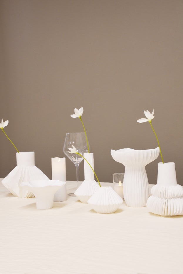 An iconic range for May Time is our classic and timeless collection of fine bone China. Made in the Philippines by an artisan family company, their pieces are collectibles. These vases are waterproof, and can be used for dried or living flowers.